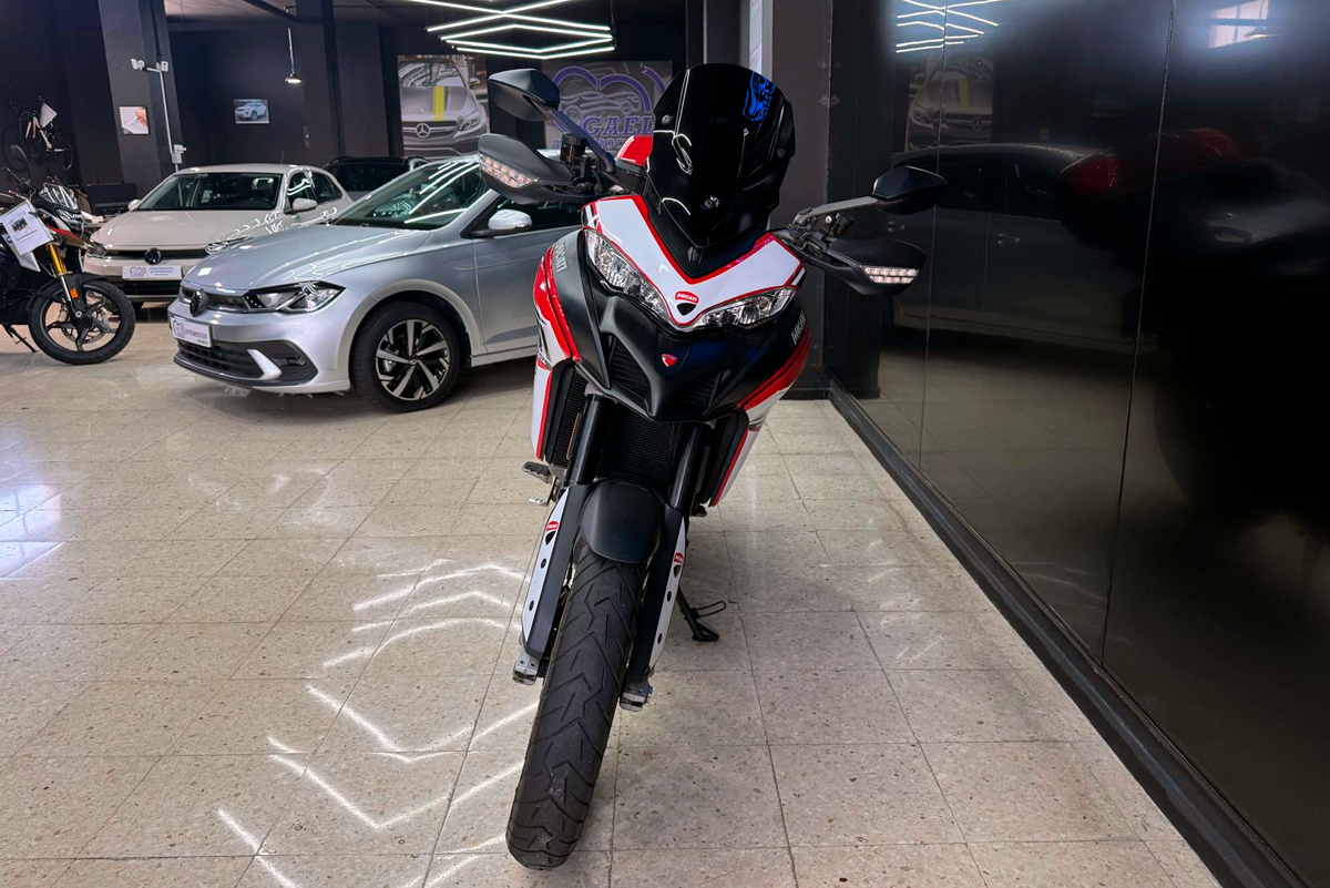 Diseñada para quienes disfrutan tanto de las curvas en carretera como de las escapadas fuera del asfalto, ofrece un equilibrio impecable entre potencia y control. Su motor de 937 cc y 113 CV garantiza una conducción emocionante y fluida, mientras que su diseño característico de Ducati transmite elegancia deportiva desde cualquier ángulo. Una moto pensada para los que quieren libertad sin límites, confort en cada kilómetro y la garantía del sello italiano en su máxima expresión.